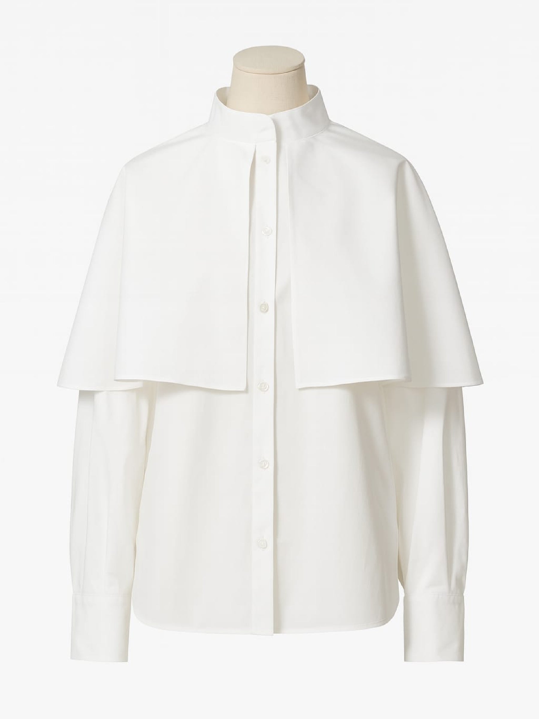 Cămașă alba harera din poplin albă cu mânecă lungă și capă tip volan h25c005