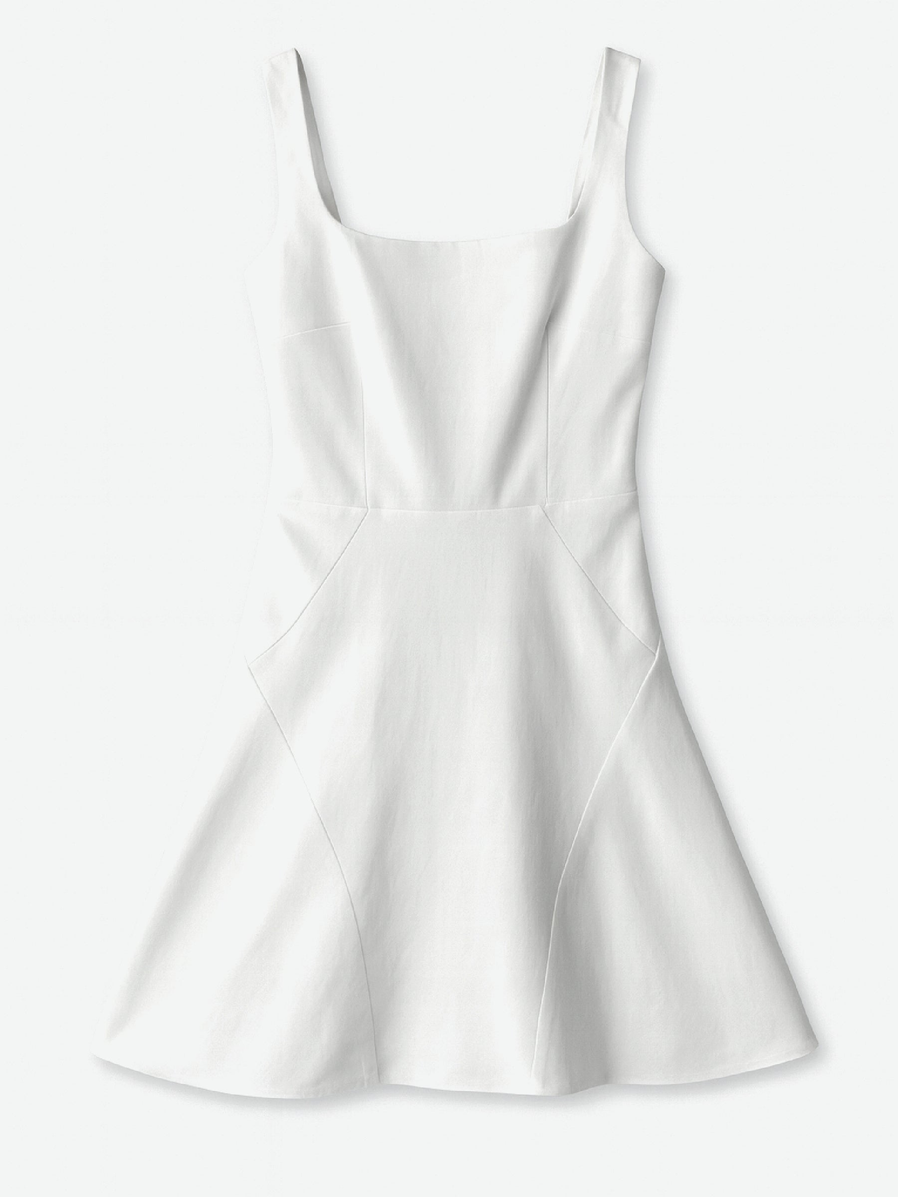 Rochie denim harera mini cu decolteu patrat si talie cambrata, alba