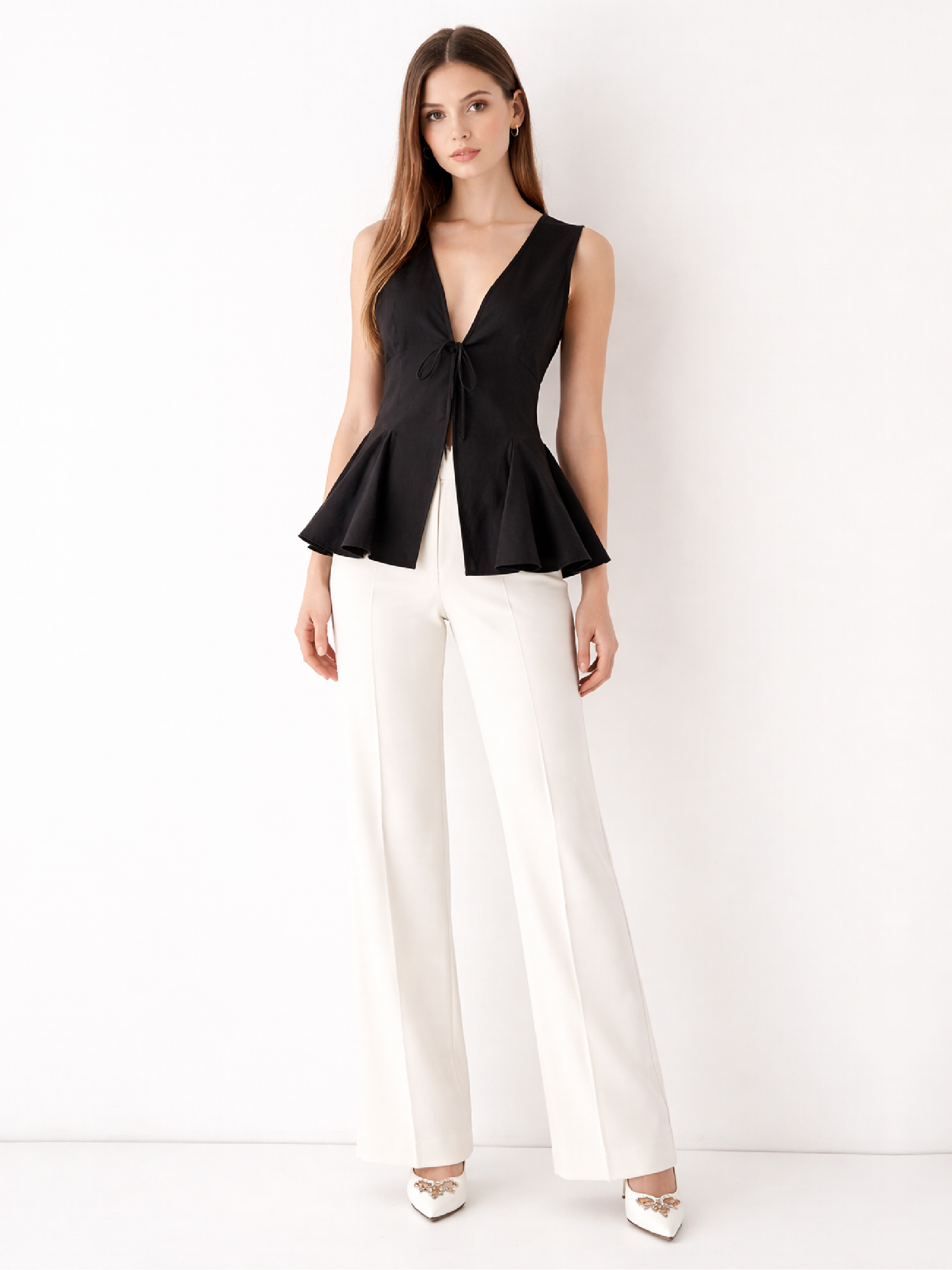 Top vestă negru cu șnur și evazat în talie h26t001 harera