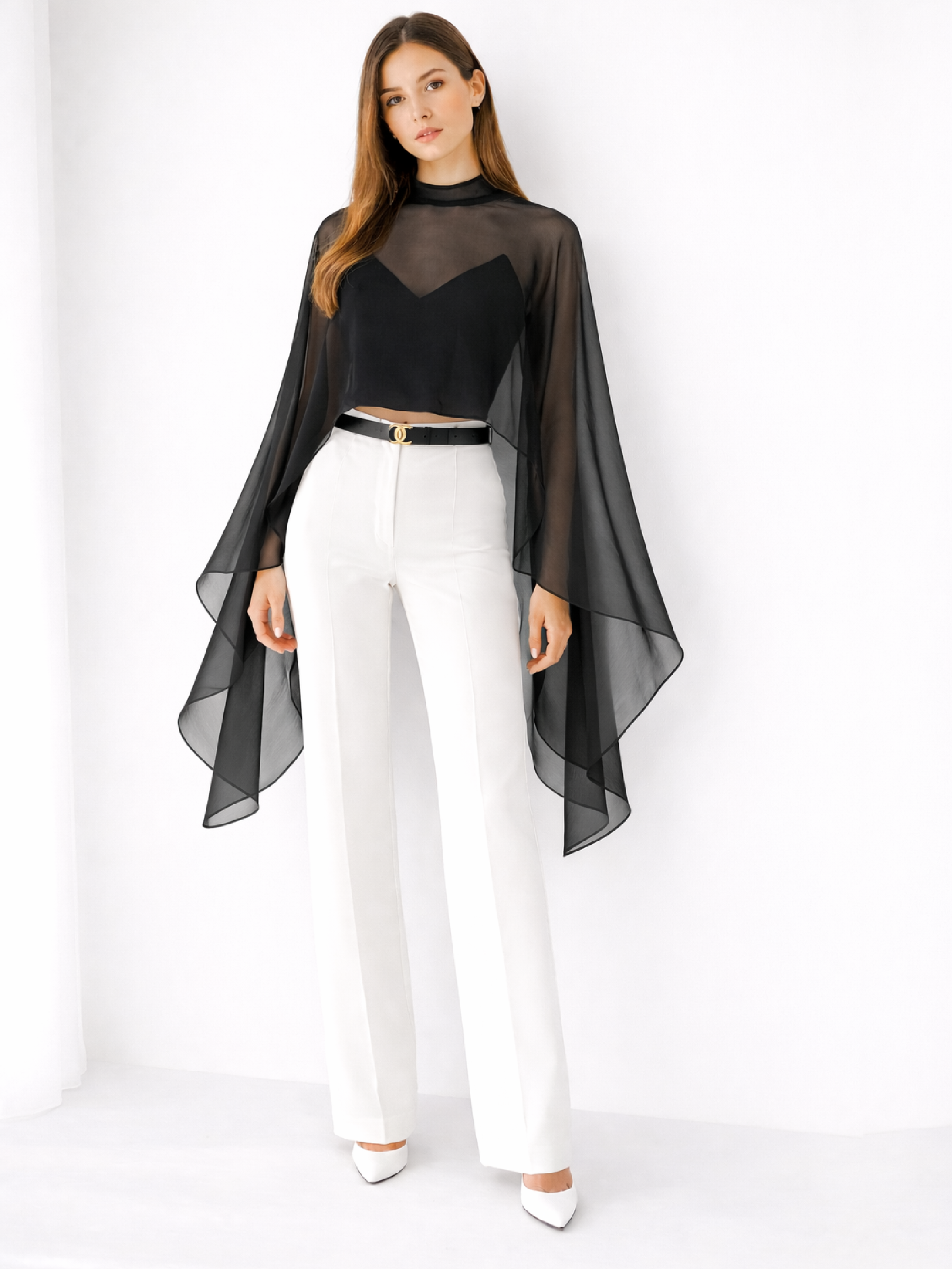 Capă din voal de mătase naturală, neagră, cu două fețe harera h26a002