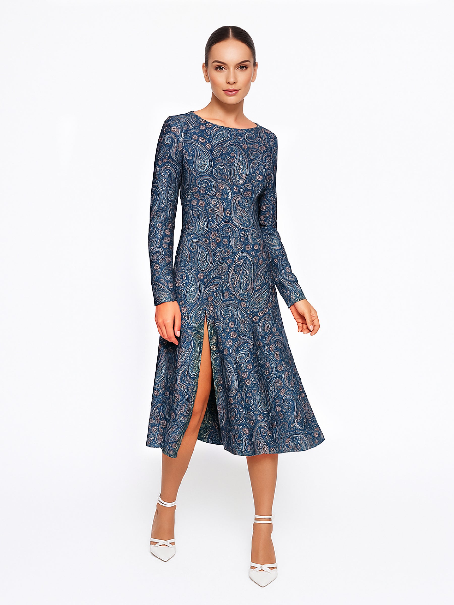 Rochie midi harera elegantă cu crăpătură pe picior, imprimeu paisley h25r004