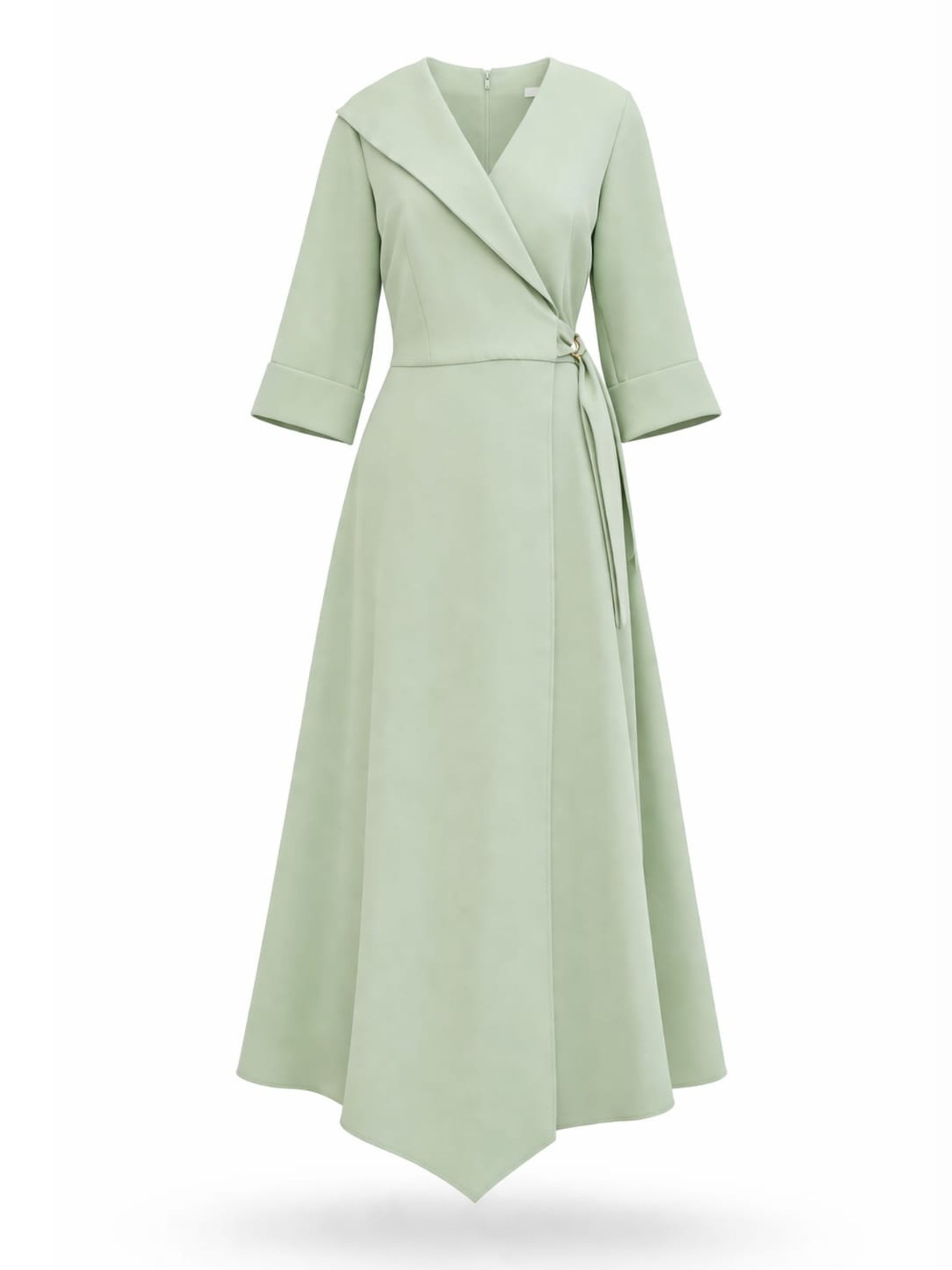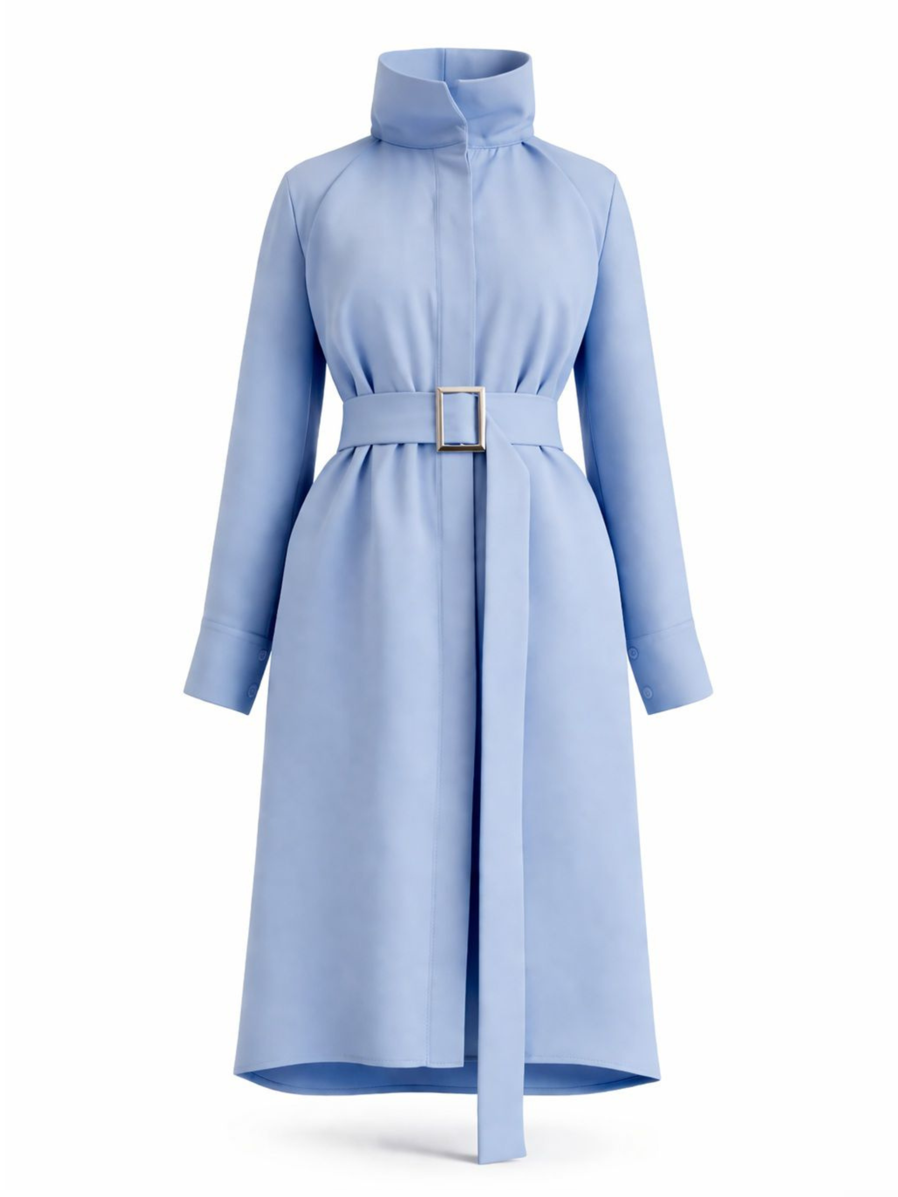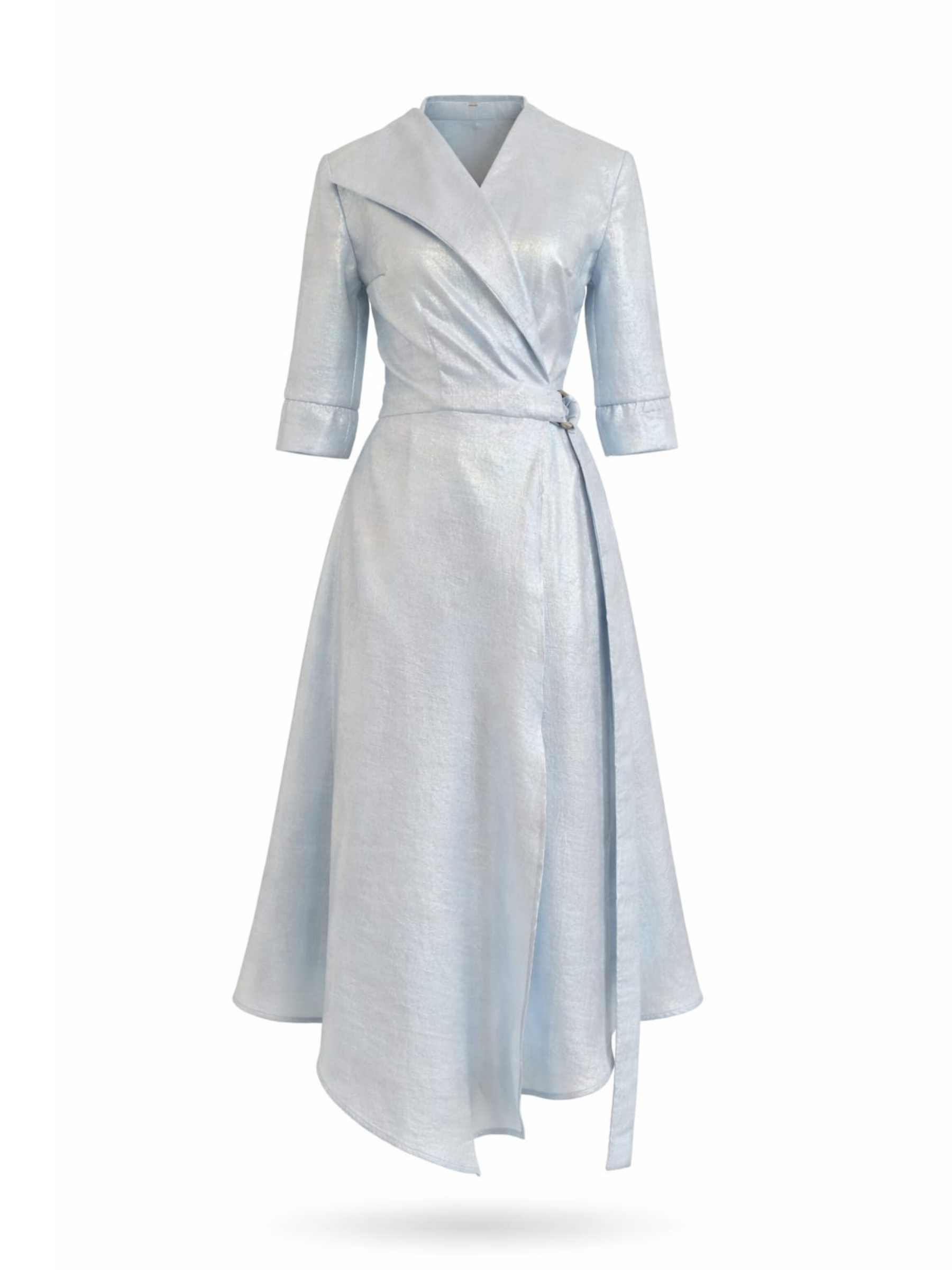 Rochie midi albastru baby blue cu guler horn, buzunare și cordon în talie Harera H26R004