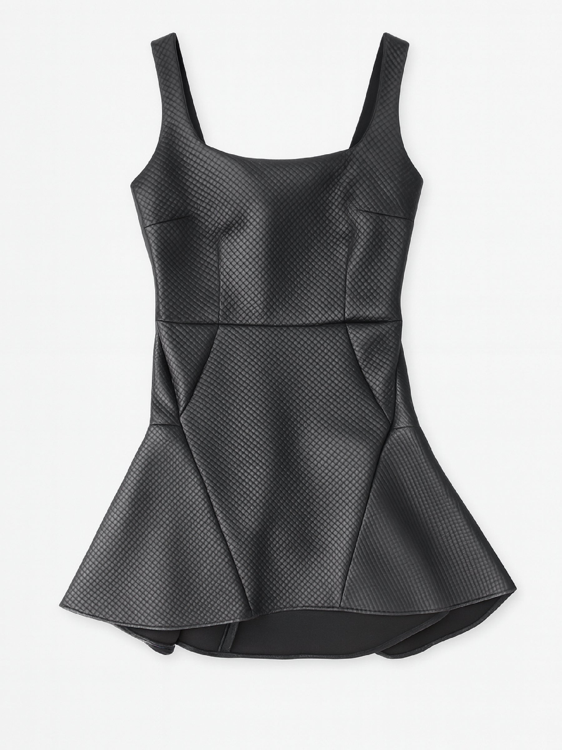 Rochie mini din imitație de piele harera, decolteu pătrat, neagra