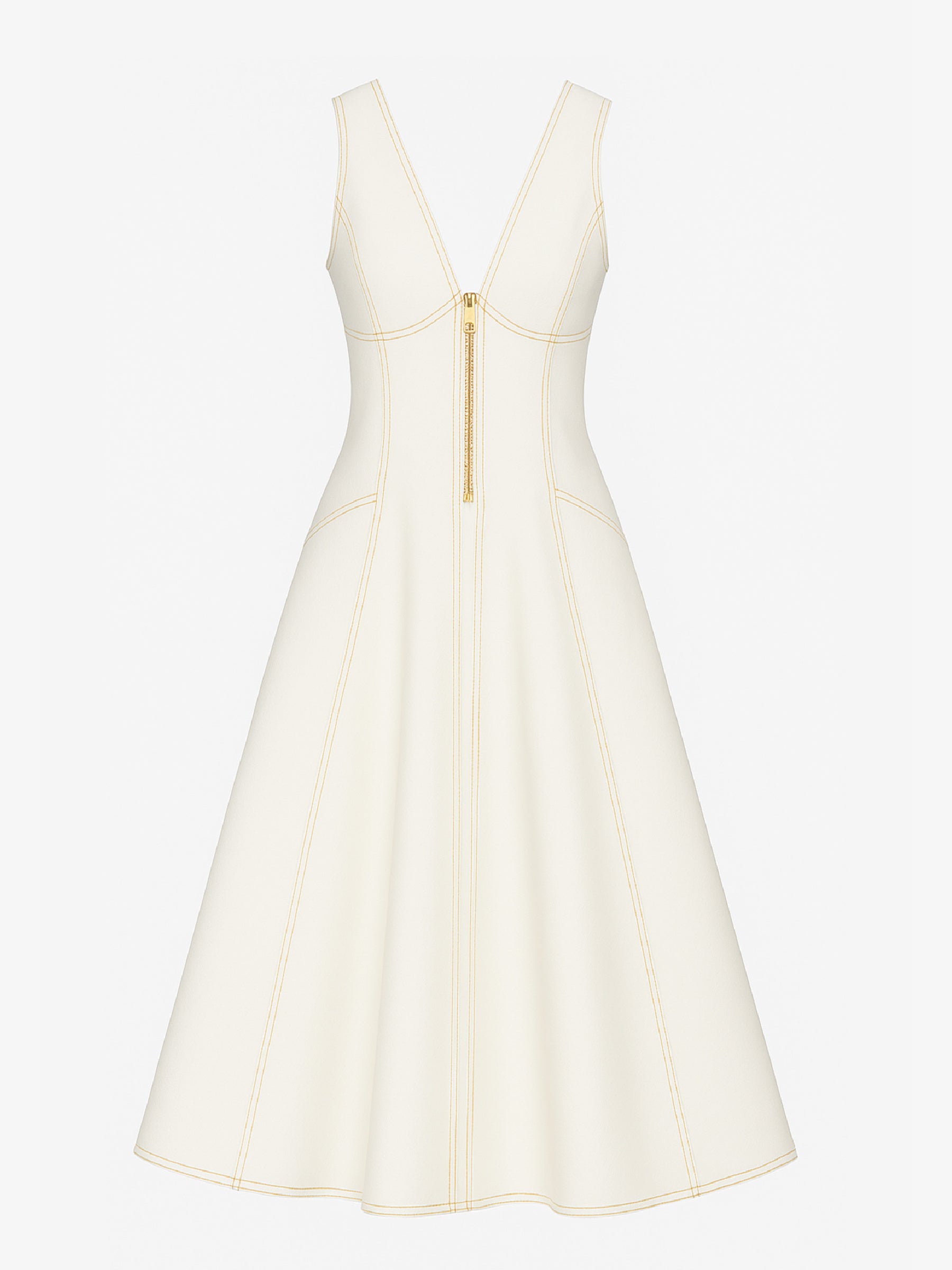 Rochie denim harera, cu cusaturi in contrast, alba h25r003