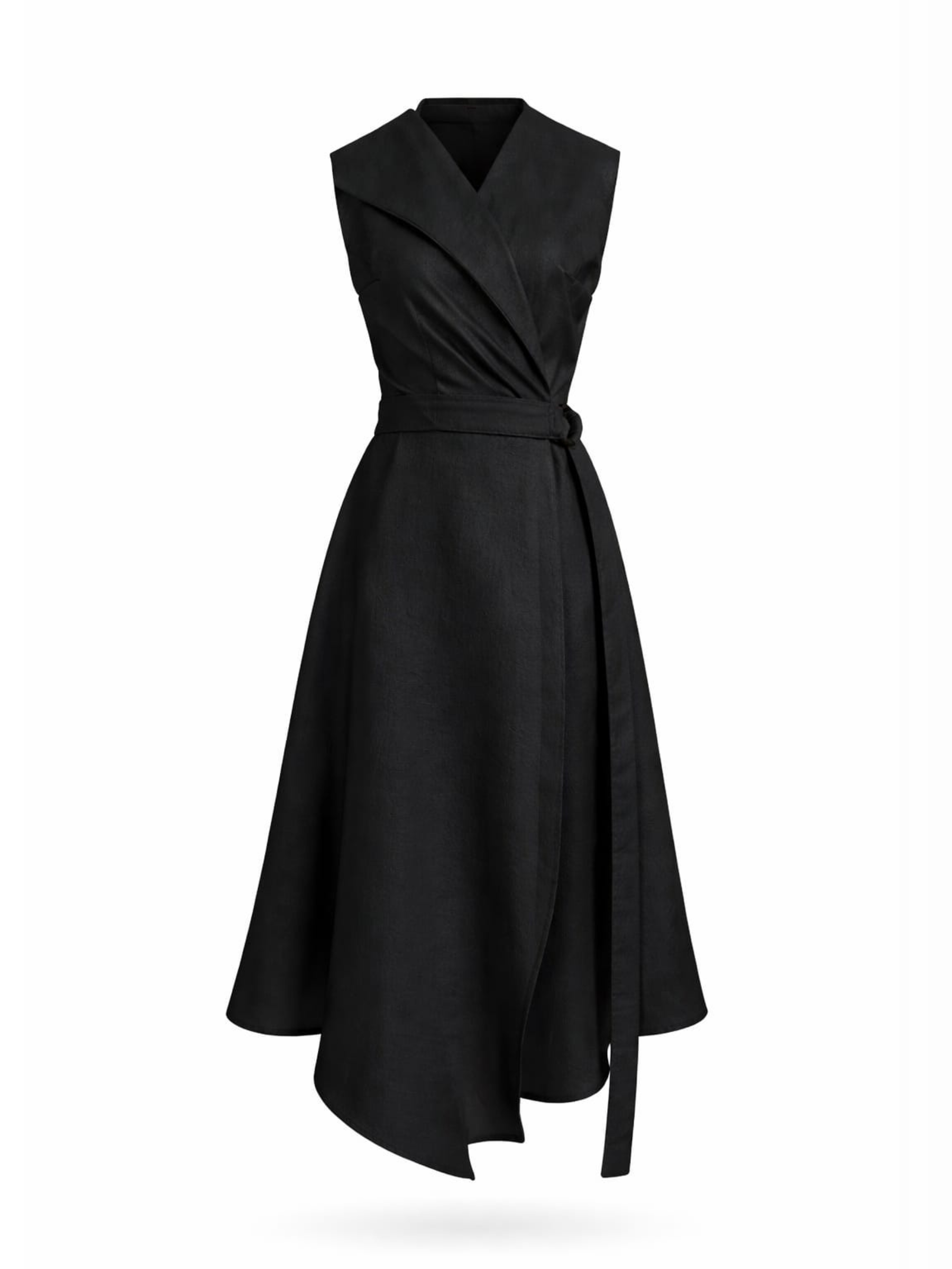 Rochie midi asimetrică elegantă negră cu decolteu în V, fără mâneci, Harera H26R008