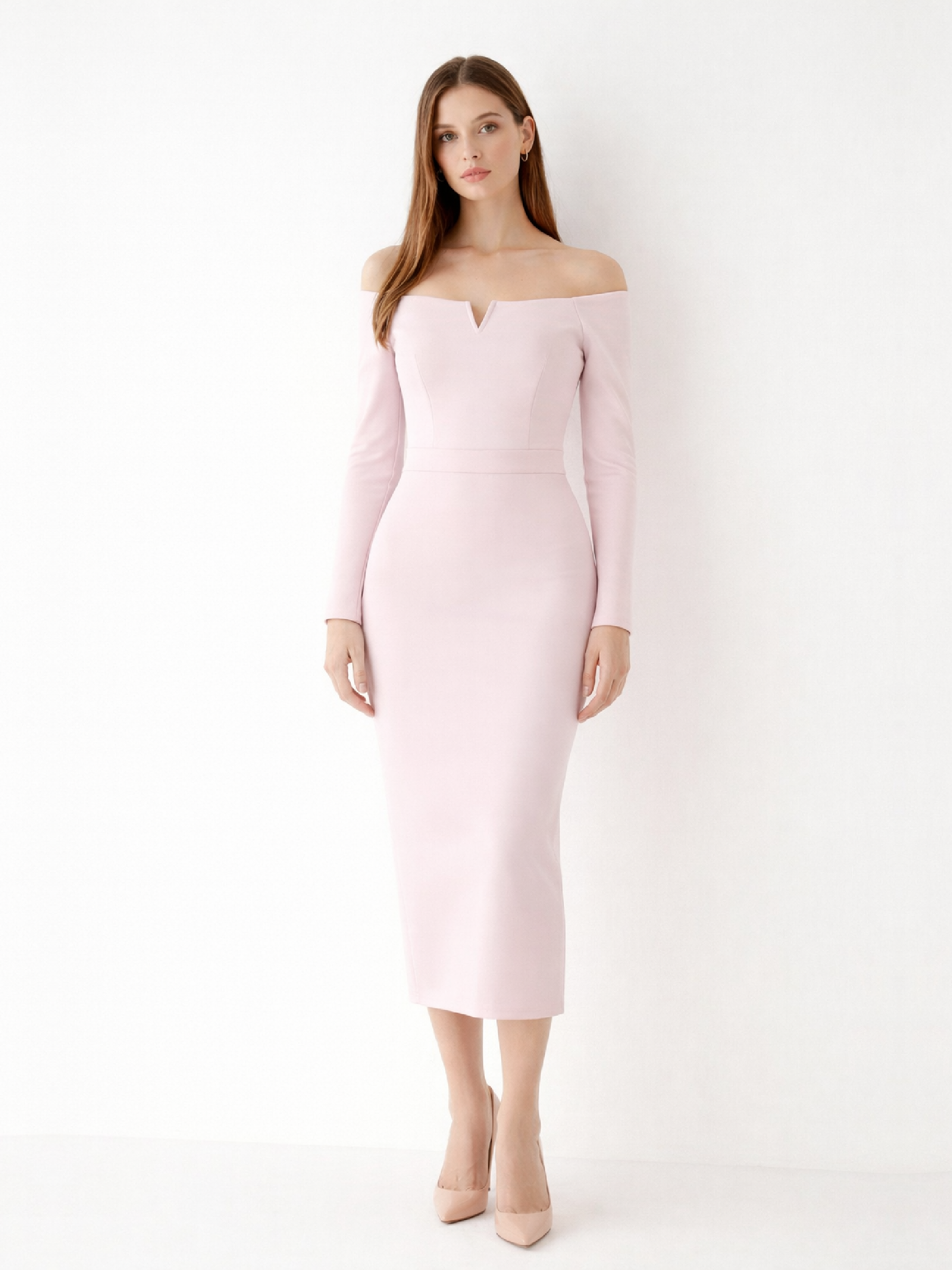 Fustă midi harera tip creion roz pudrat h25f004