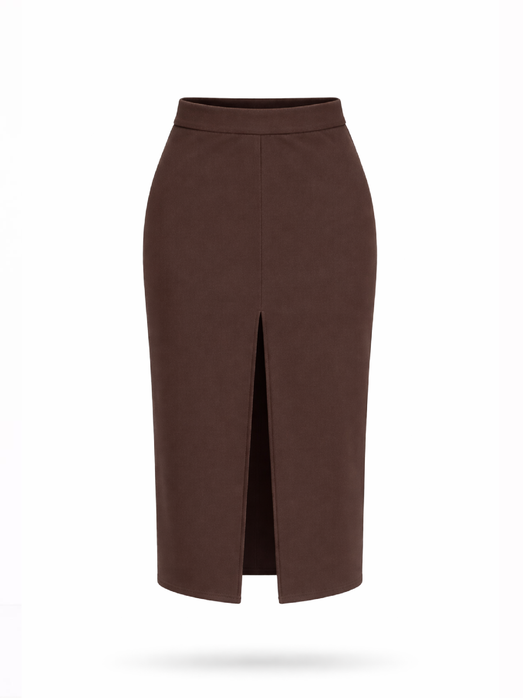 Fustă maro creion midi cu crăpătură frontală Harera H26F002