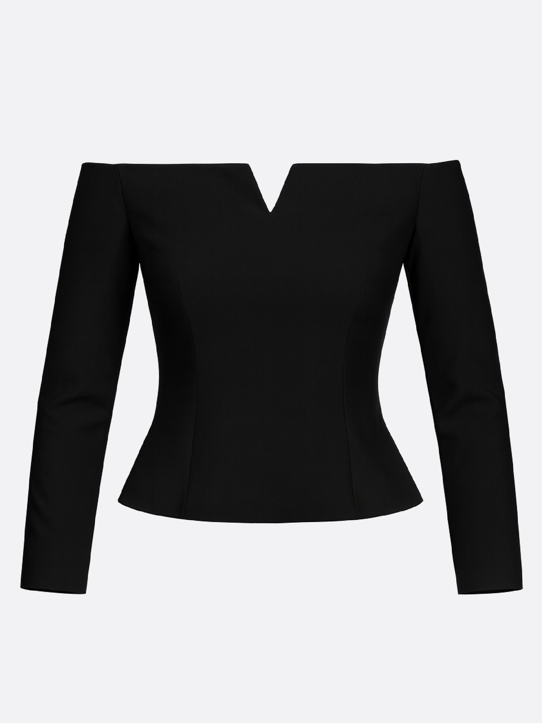 Top harera cu umeri goi si decupaj in v, negru h25b002