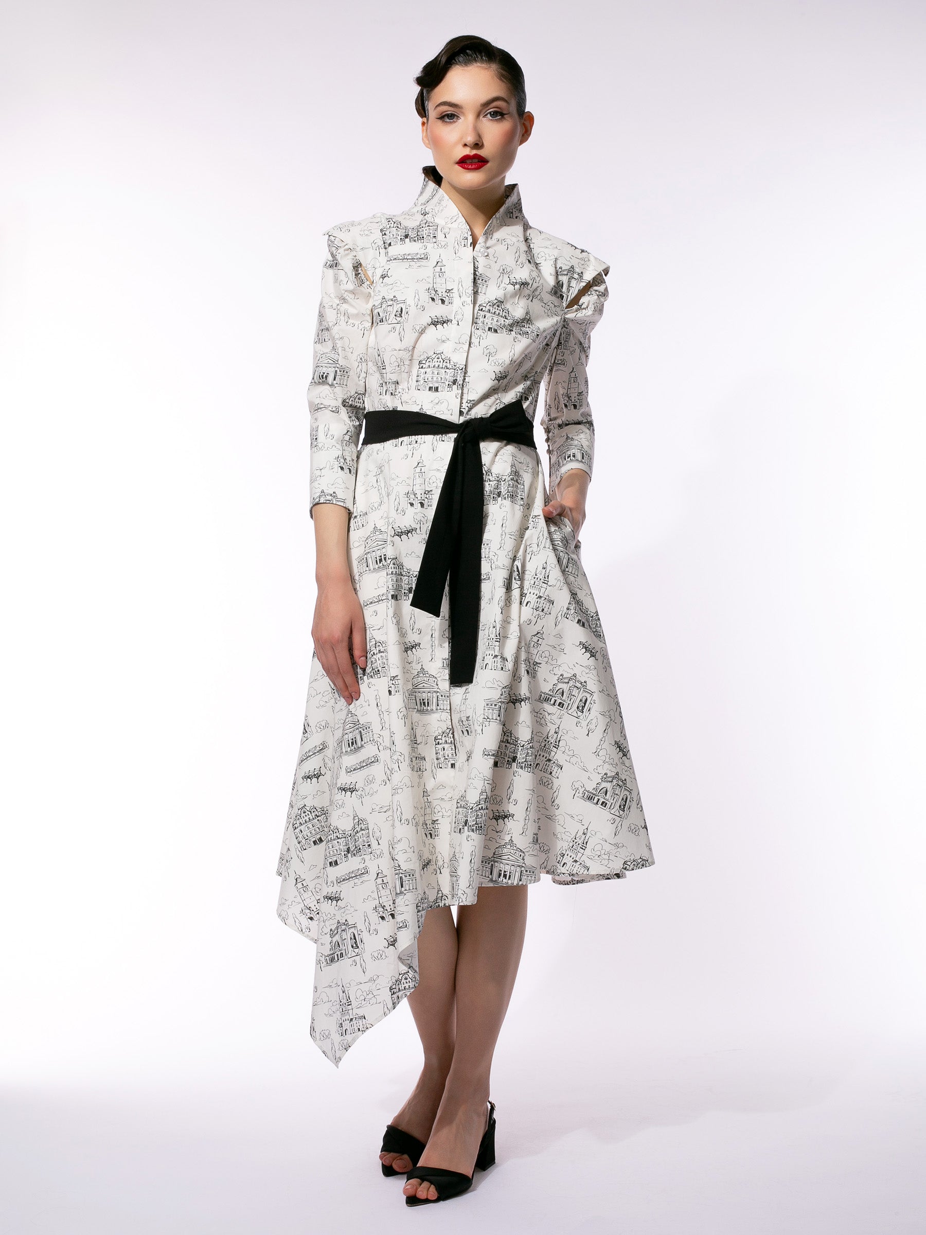 670,00 lei670,00 leiRochie numita Echoes of Romania este realizata din bumbac cu guler kimono și print este decorată cu un print exclusiv, creat special pentru brandul Larisa Dragna...
