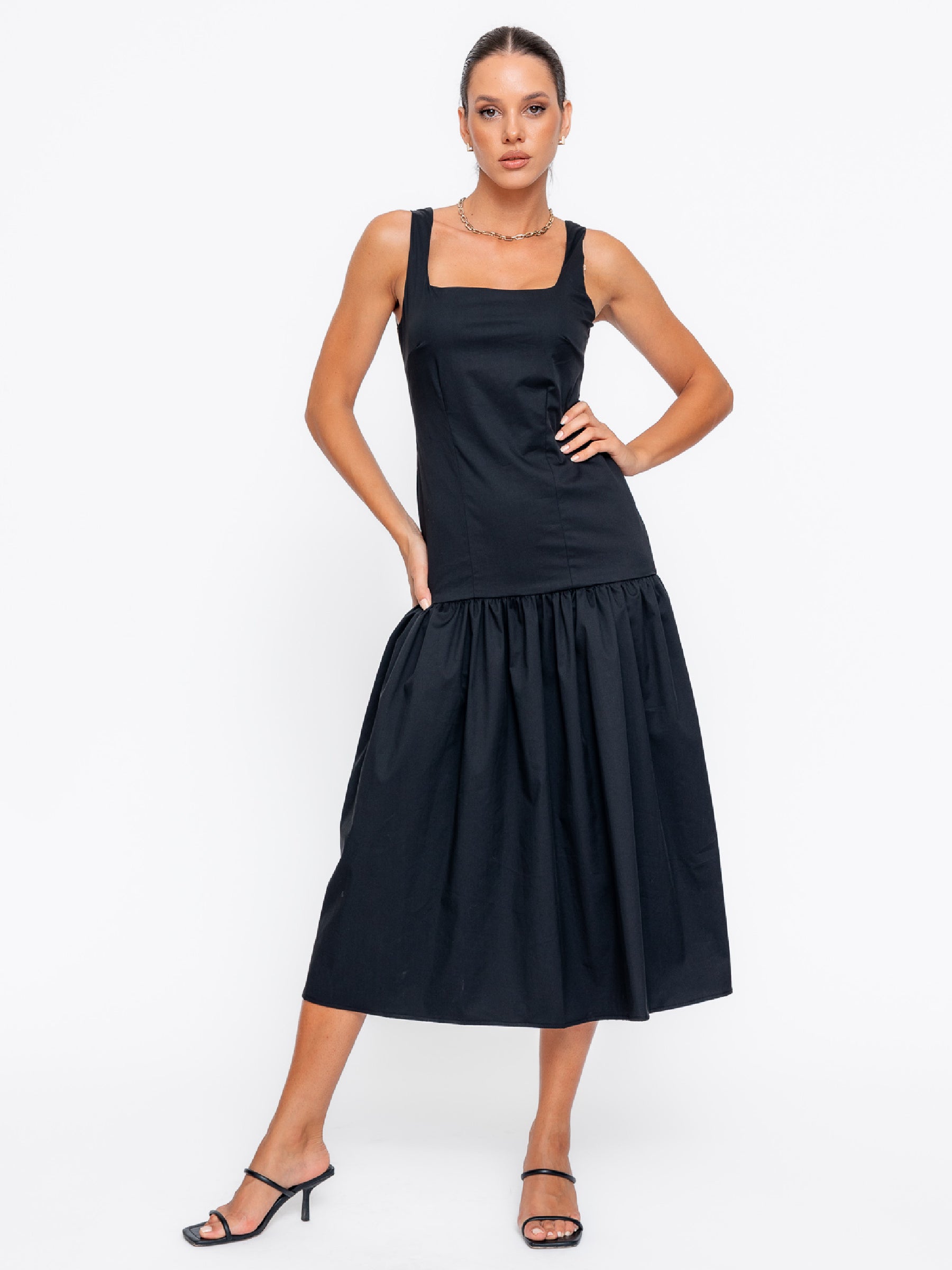 Rochie cambrata harera, cu talie joasa, decolteu patrat, neagra h25002
