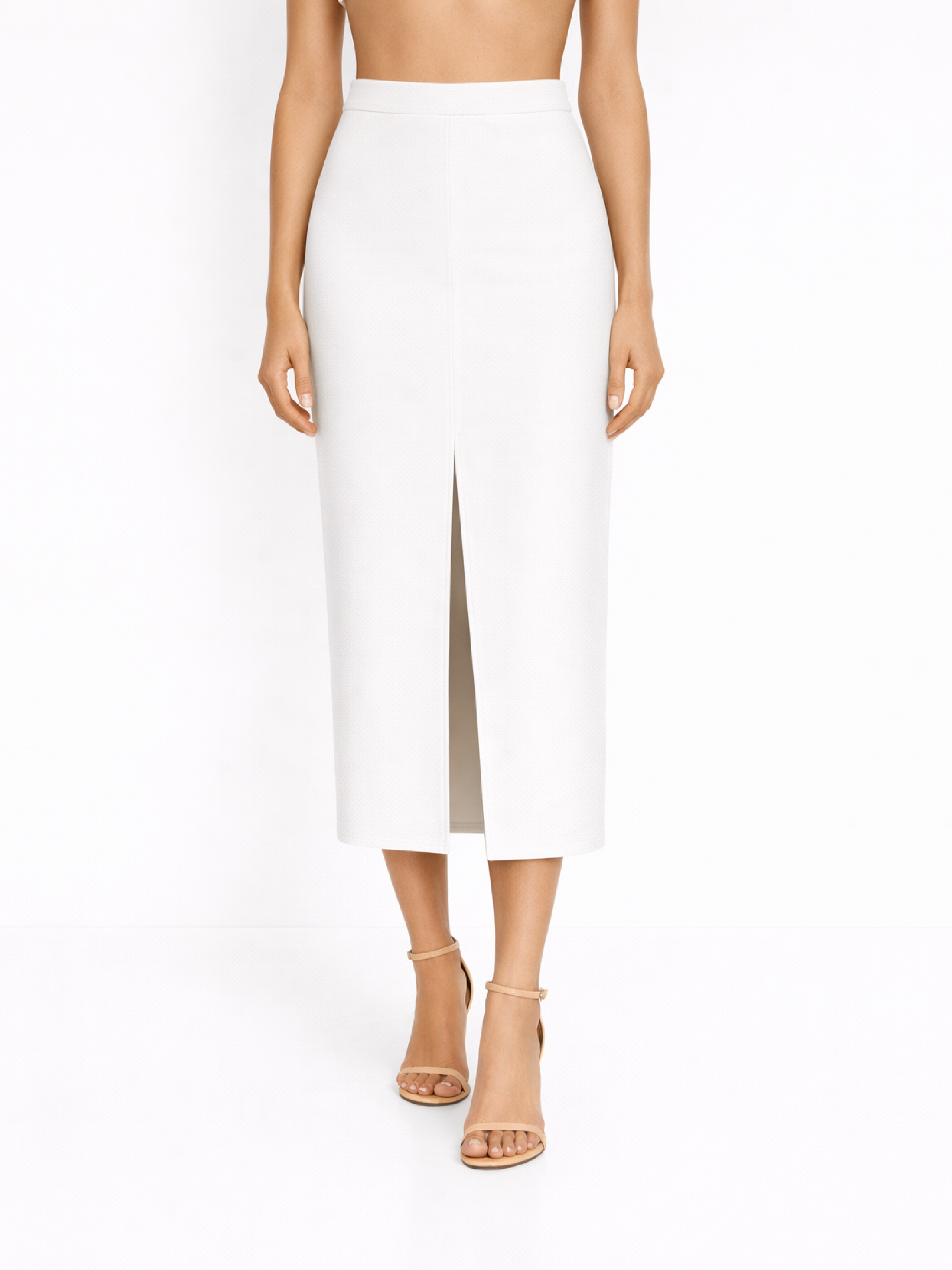 Fustă albă creion midi cu crăpătură frontală Harera H26F002