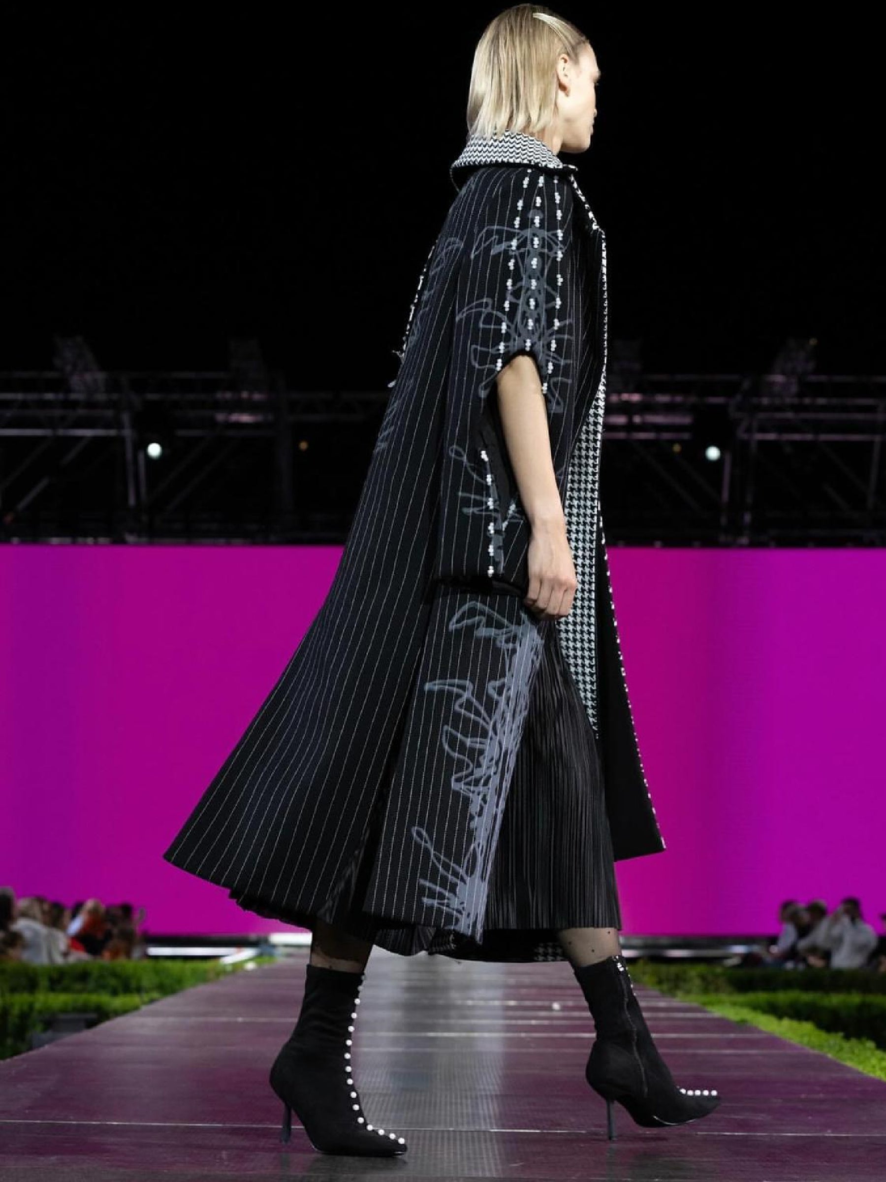 Palton Daiana Stancioiu din stofă neagru cu alb, cu capă de umăr detașabilă DS007BF24