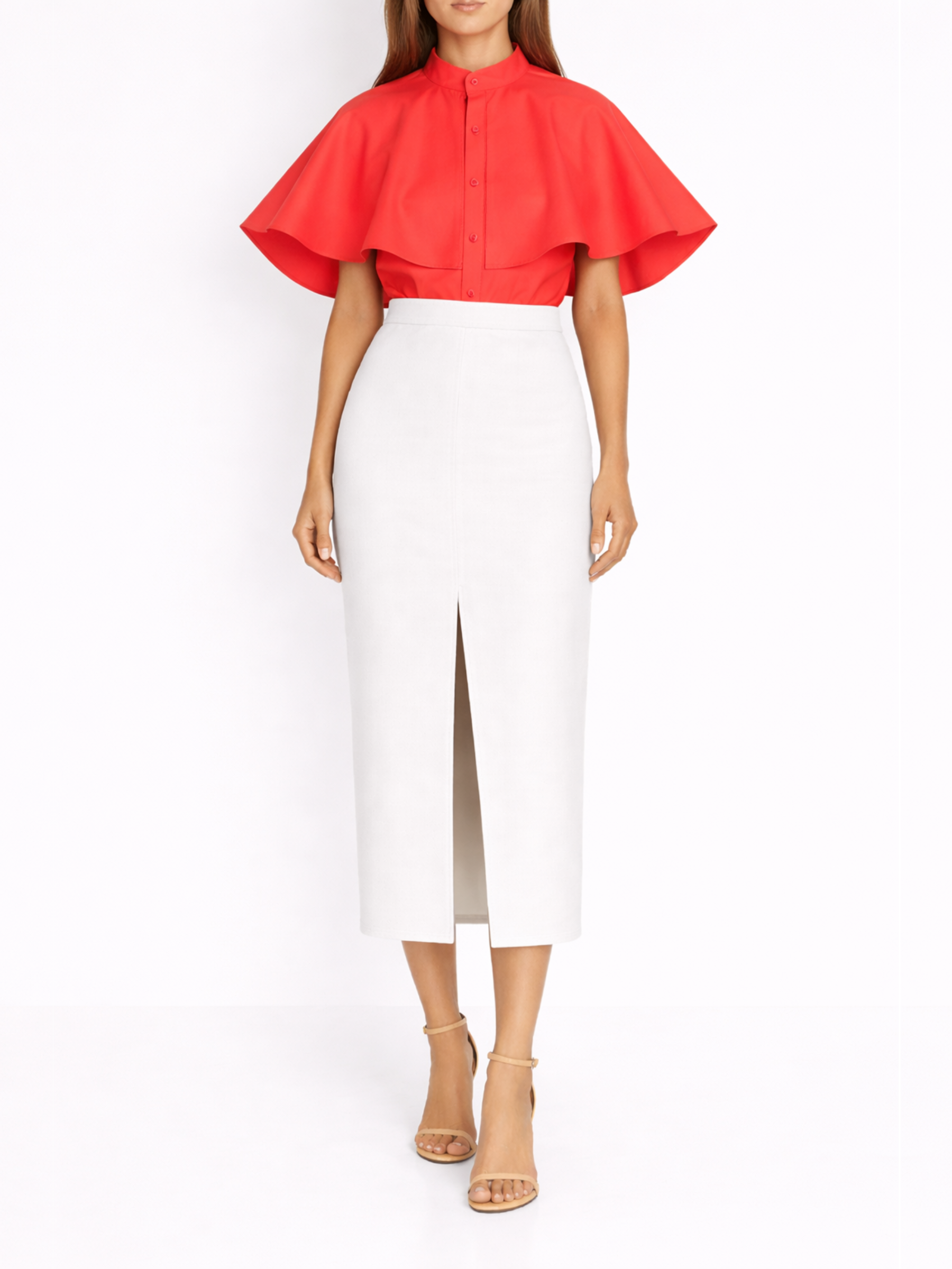 Cămașă din poplin roșu corai cu pelerină harera h25c002